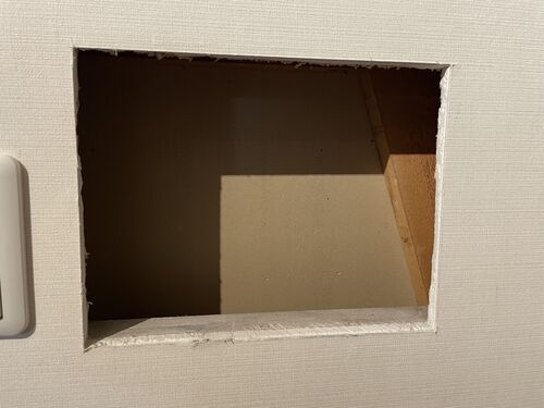 そんな時はニッチを作ればいいんじゃない?^^ 真夜中にトイレに起きた夫が 犬ガードに躓いて階段3段程踏み外し 壁に頭をぶつけて、、、 幸い体は無事だったけど 壁は凹みました(その写真撮るの忘れました 困ったねぇ ってことで凹みををくり抜いたのこんな…
